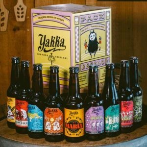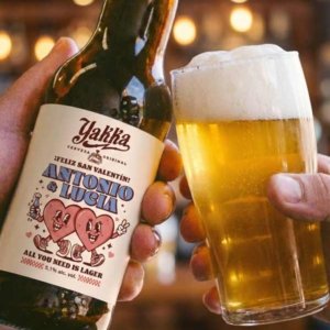 Un pack con 9 cervezas distintas para compartir y una botella con etiqueta personalizada con vuestros nombres.